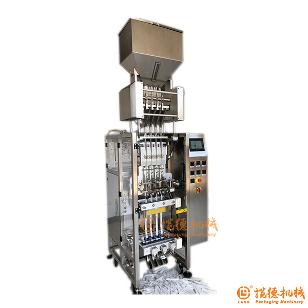 該款多列顆粒包裝機(jī)是在普通款式包裝機(jī)基礎(chǔ)上自行研制開發(fā)的顆粒包裝設(shè)備,可以配置真空上料機(jī)進(jìn)行物料的自動(dòng)輸送,真空上料機(jī)自動(dòng)吸取物料,輸送到機(jī)器物料斗里面,然后通過量杯或者小型電子稱對(duì)物料進(jìn)行計(jì)量稱重,進(jìn)行下料、制袋、封口、成品輸出等環(huán)節(jié)進(jìn)行物料的包裝。