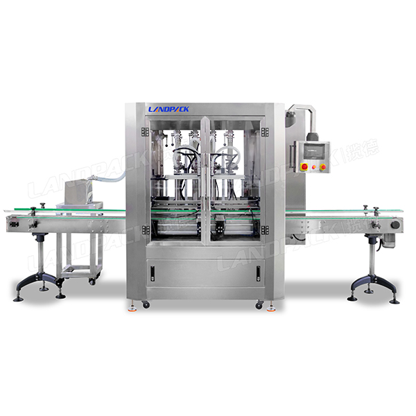 2.本線采用自動(dòng)送瓶、4頭伺服活塞灌裝機(jī)、振動(dòng)盤自動(dòng)上蓋、四輪旋蓋機(jī)組成自動(dòng)化生產(chǎn)線;