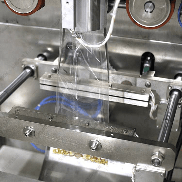 這款膨化食品包裝機(jī)械設(shè)備可以實(shí)現(xiàn)自動(dòng)送料、稱重計(jì)量、制袋、充填、封口、打印日期和成品輸出等一系列步驟,無(wú)需人工干預(yù),除了最開(kāi)始需要人工倒入物料以外,其余環(huán)節(jié)都是全自動(dòng)完成。