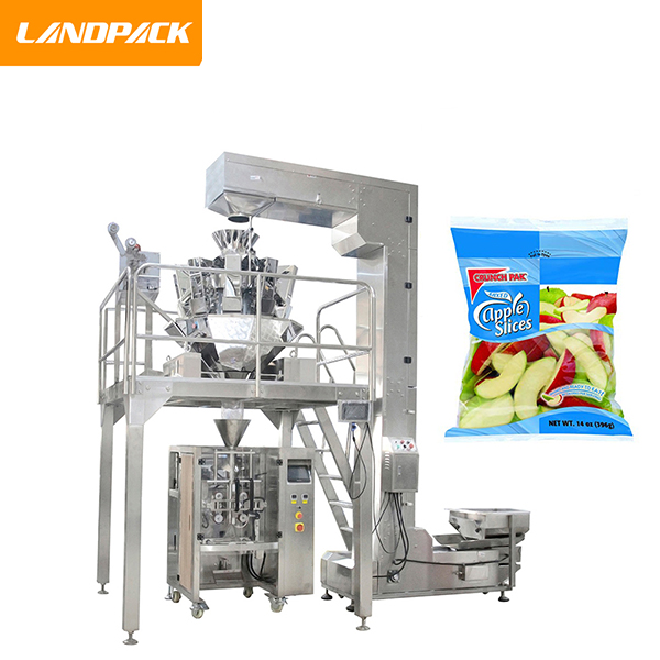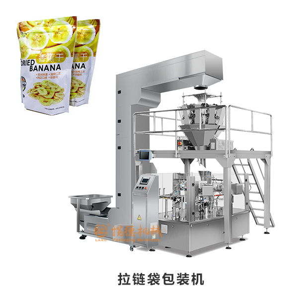 脫水果蔬包裝機是我司針對市場上一些香蕉干、蘋果片、香蕉片、脆片等類型的油炸食品而研發(fā)的一款自動稱重包裝機,該機由立式包裝機主機、10頭電子組合稱、Z型物料提升機、工作支撐平臺、成品輸送機、氮氣機組合而成。這臺機器的工作流程是:工作人員把需要包裝的蘋果片、香蕉片等物料倒入震動儲料斗當(dāng)中,通過Z型上料機,把香蕉干輸送到10頭電子稱當(dāng)中進行自動稱重,然后經(jīng)過下料、填充、充氮氣、封口,成品輸出等一系列環(huán)節(jié)全自動完成包裝過程。